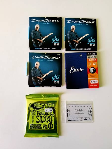 Varie mute di corde mm 0.10-46-48 di buona qualità.1 Regolo per registrazione action. 3 tipi di capotasto mobile.1 avvolgicorde,un accordatore digi...