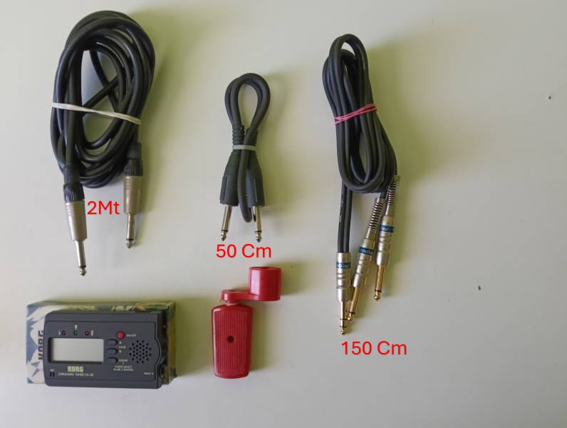 3 tipi di capotasto mobile.1 avvolgicorde,un accordatore digitale Korg,1Jack,1 cavo corto per effetti pedaliera,1 cavo (professionale) 150Cm stereo.1 Robusto appoggia chitarra da pavimento
