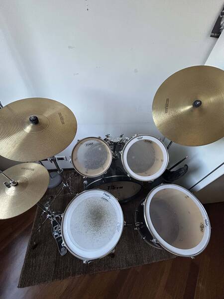 Batteria Tama acquistata nel 2019, in aggiunta di 2 paia di bacchette di cui uno in carbonio, porta bacchette da attaccare con custodia per bacchette, silenziatori, spartiti vari e chiave di regolazione.