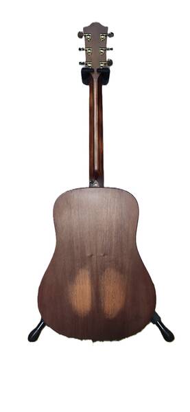 Chitarra acustica dreadnought con top, fondo e fasce in mogano massello. Ccala 645 mm , capotasto 44,5 mm, manico in mogano con due strisce di rin...