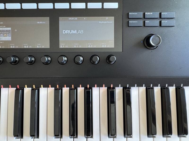 La S61 MK2 è un controller MIDI di fascia alta con 61 tasti semi-pesati (meccanica Fatar) e doppi schermi a colori ad alta risoluzione per navigare e modificare i suoni direttamente dall’hardware. Offre un’integrazione profonda con il software Komplete di Native Instruments e con le principali DAW (Ableton Live, Logic Pro, ecc.), per un processo creativo fluido e immediato.