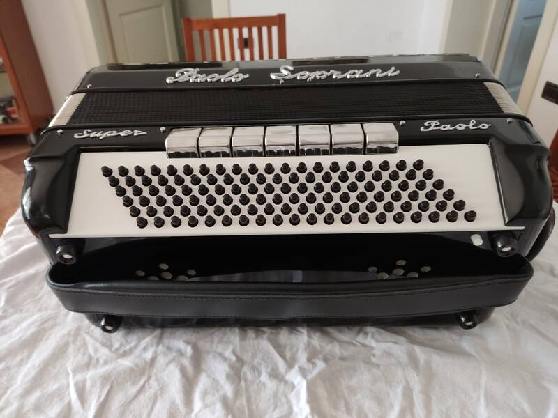 Paolo Soprani modello Super Paolo 41/120, 13 registri al canto e 7 ai bassi, master laterale, microfoni interni per amplificazione (mono/stereo, contr...