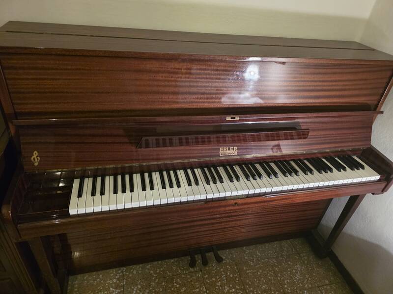 Pianoforte verticale Erler da studio , acquistato nel 1983 , usato poco , suono brillante ,meccanica in buone condizioni ma necessita manutenzione. Mobile in legno lucido in buone condizioni, ha una ammacatura sul cover tastiera. Pianoforte mai spostato dall'acquisto , comprato da Pisoni pianoforti . Ritiro a cura dell'interessato .