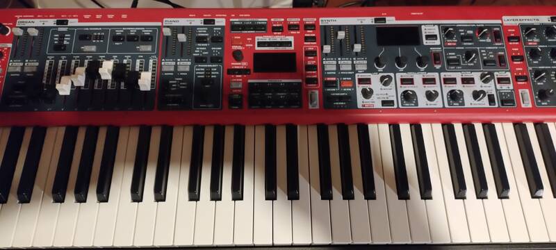 NORD STAGE 4 a 73 tasti hammer action. Per passaggio a tastiera a 88 tasti vendo Nord STage 4 hammer action a 73 tasti. Acquistata nel marzo del 2024 e dunque in ottimo stato e sempre conservata e usata in casa. Vendo tastiera con cavi, dust cover, pedale di sustain a 3500 euro. Le spese di spedizione sono a carico del compratore. Ma se uno vive in prossimità di Cesena (FC) può venirsela a prendere direttamente a casa mia.