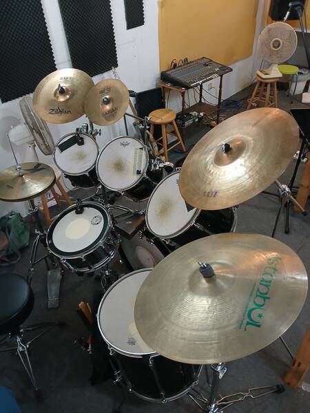 Batteria Pearl Session Elite col. Nero. 1 Cassa, 1 Rullante, 3 TOM, ! Timpano, 5 Aste per piatti, Doppio Pedale, 1 Campanaccio, Custodie per Tom, Timpano e cassa. SENZA PIATTI