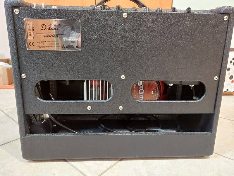 Fender Hotrod Deluxe con cono Eminence Redcoat Tonespotter (usato spesso da Michael Landau), valvole e condensatori Tube Amp Doctor, footswitch incluso.
