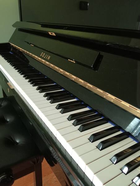 Pianoforte verticale nero lucido. Marca: Sojin. Vendo insieme allo sgabello.