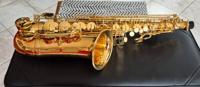 Questo saxofono (prototipo unbranded, copyright free) è realizzato dalla stessa fabbrica che realizza i vari YAMAHA Custom originali.
